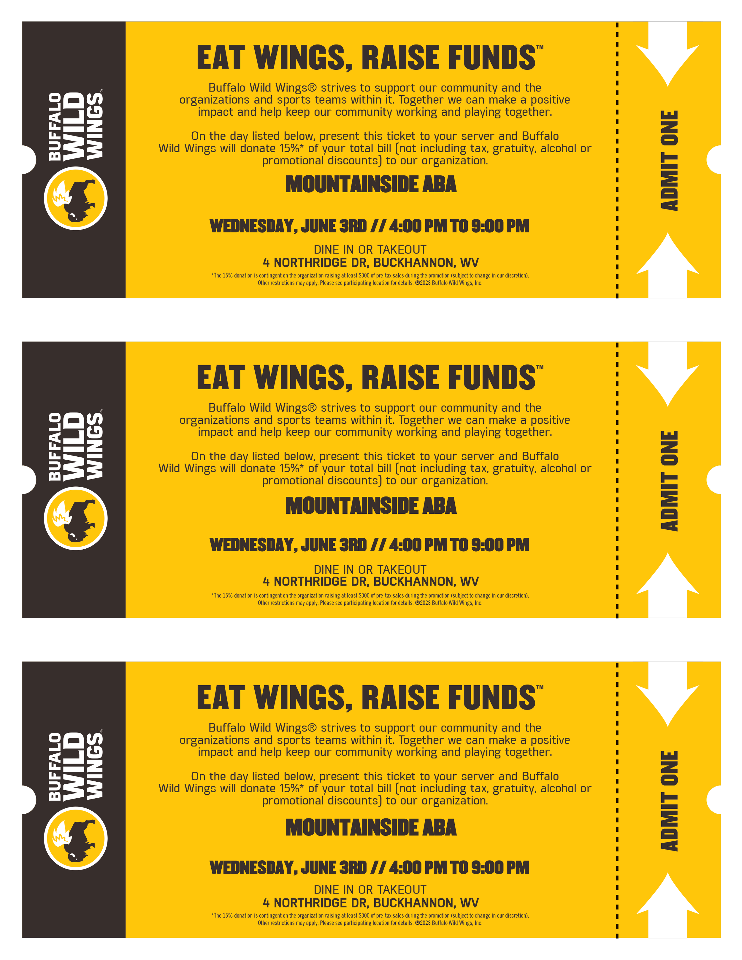 Mark your calendars for Wednesday, June 3, for Mountainside ABA's Eat Wings, Raise Funds fundraiser from 4-9 p.m.
